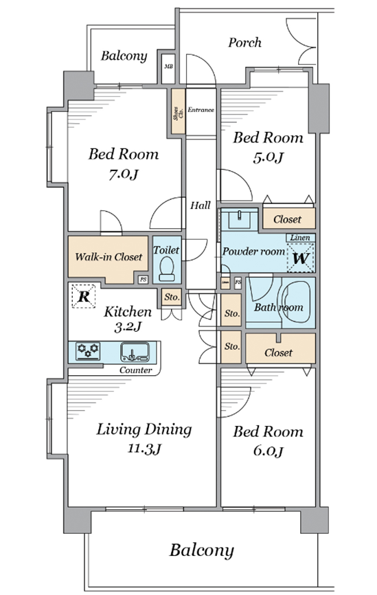 洋室 7.0畳 洋室 5.0畳 洋室 6.0畳 LDK |